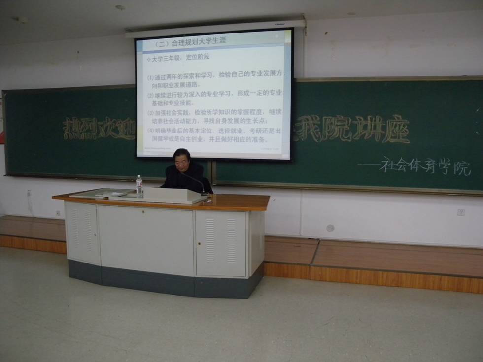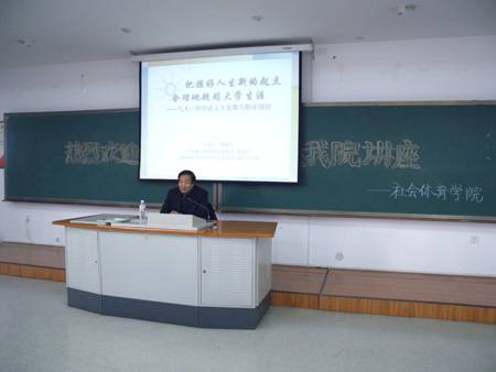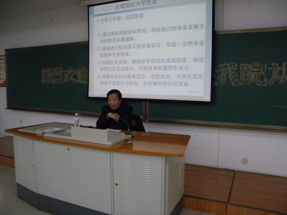 针对刚刚进入大学的新生而言,要从现在开始,合理规划大学四年学业。大学阶段是人生快速发展期,应尽量多地获取新知识,提高职业素质,培养能力,完善自己,为成功的未来奠定良好的基础。他指出,大学一年级应完成了解大学自身存在的特点和规律,尽快适应大学的基本生活;大学二年级要全面拓展自身素质,形成自主学习能力,建立阅读计划,通过选择性的阅读和课程学习,努力完成一般基础知识学习,形成基本的知识结构并提高实践能力;大学三年级是定位阶段,明确毕业后的基本定位,选择就业、考研还是出国留学或是自主创业,并且做好相应的准备;大学四年级是检验和冲刺阶段,为毕业后的去向选择而“冲刺”,准备就业。刘老师言谈风趣幽默,分析深入浅出,现场气氛活跃。