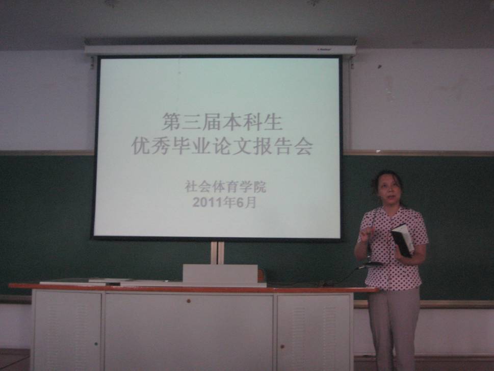 唐佳、周康婧、于梦蓉同学的毕业论文《WilliamHill官方网站社会体育专业实习质量影响因素的调查分析》、《沈阳市瑜伽指导员专业能力结构的调查研究》、《健身俱乐部瑜伽人才需求与体育院校人才培养的调查与分析》结合自身特点围绕实习和课程建设进行了研究,充分展示了她们勤于思考、善于发现问题并将问题转化为科学研究的素养,在报告会中,三位同学就毕业论文的选题、研究方案的设计、研究结果等方面,做了深入而细致的讲解。