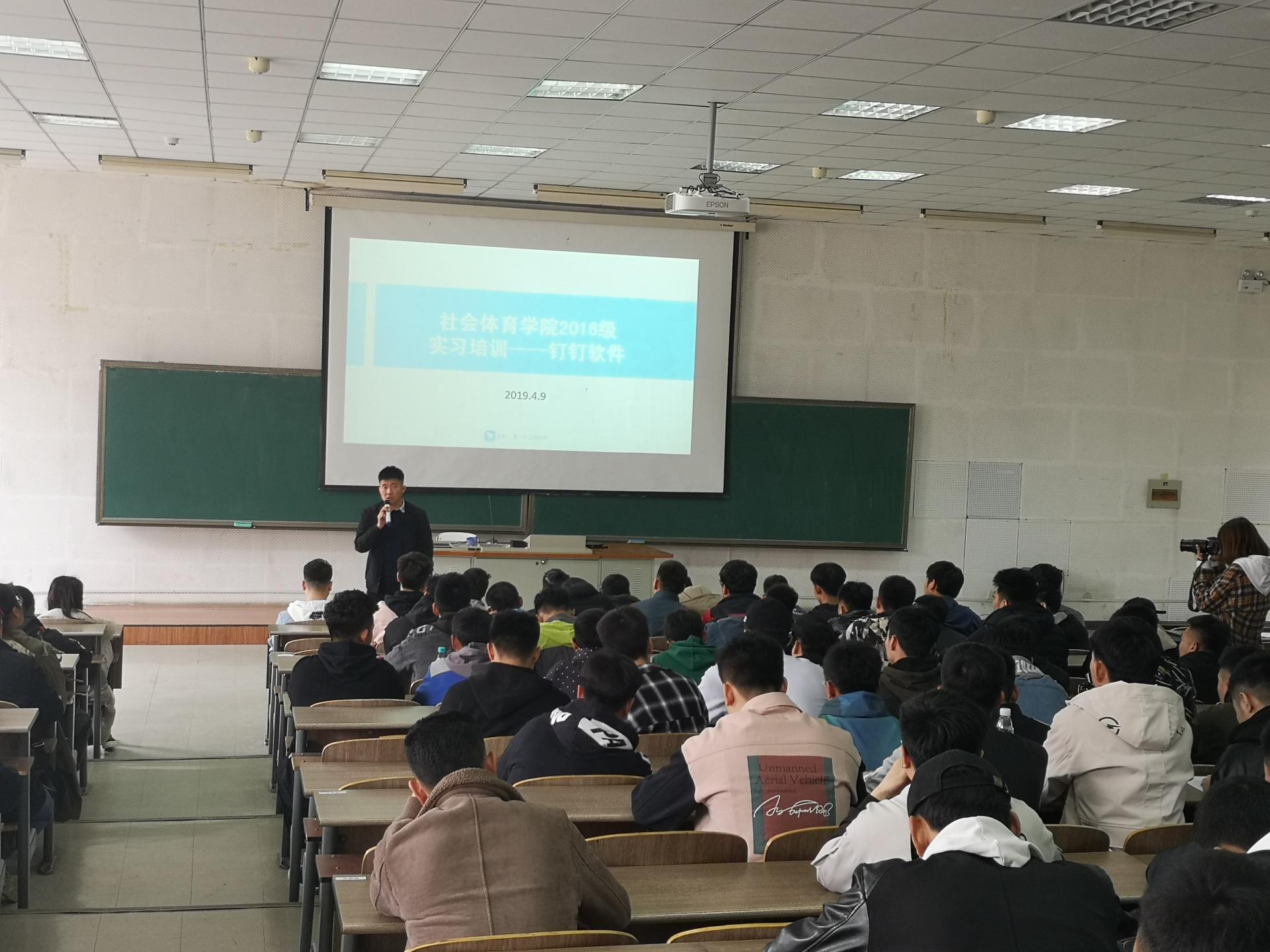 4月9日下午,WilliamHill中文官方网站2016级在教学楼112教室举办“钉钉”办公软件培训讲座,邀请党总支副书记赵宁讲解“钉钉”软件相关知识,年级辅导员、2016级全体员工参加。