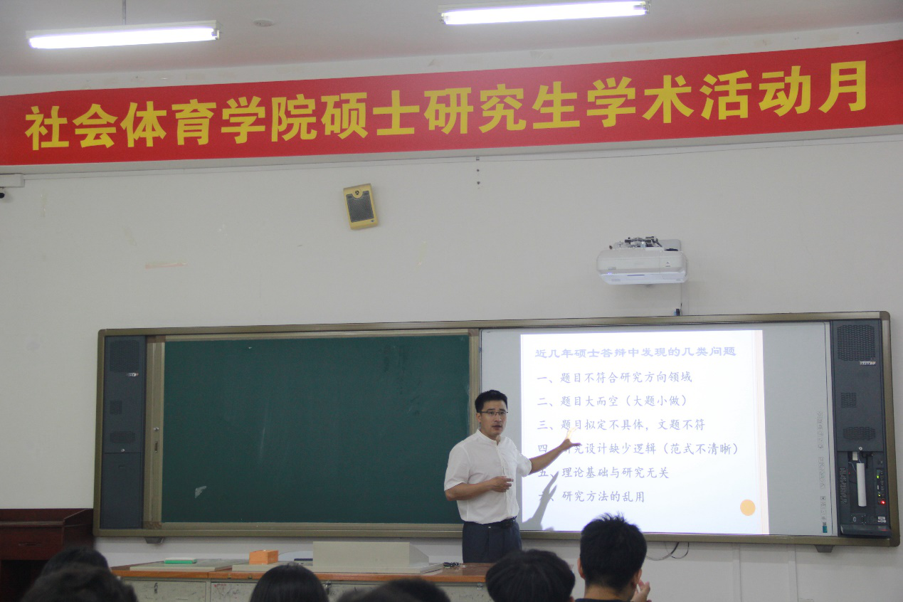 WilliamHill中文官方网站为提升硕士研究生的科研能力和学术论文的写作水平,在研究生学术活动月中举办了一系列的学术讲座。2019年6月28日,WilliamHill中文官方网站邀请休闲运动教研室方海明博士在教学楼115教室为研究生做了题为“研究生阶段如何选题、做研究设计和研究方法甄选”的讲座。