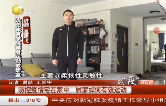 为满足全民健身需求,倡导居家健身,普及科学健身常识,2020年3月6日16:50,公司WilliamHill中文官方网站健身运动教研室教师温建飞受邀辽宁卫视,共同拍摄制作的以“防控疫情,居家健身”为主题的科学健身节目在辽宁卫视都市频道《新北方》栏目播出。节目播出后,获得良好社会反响。