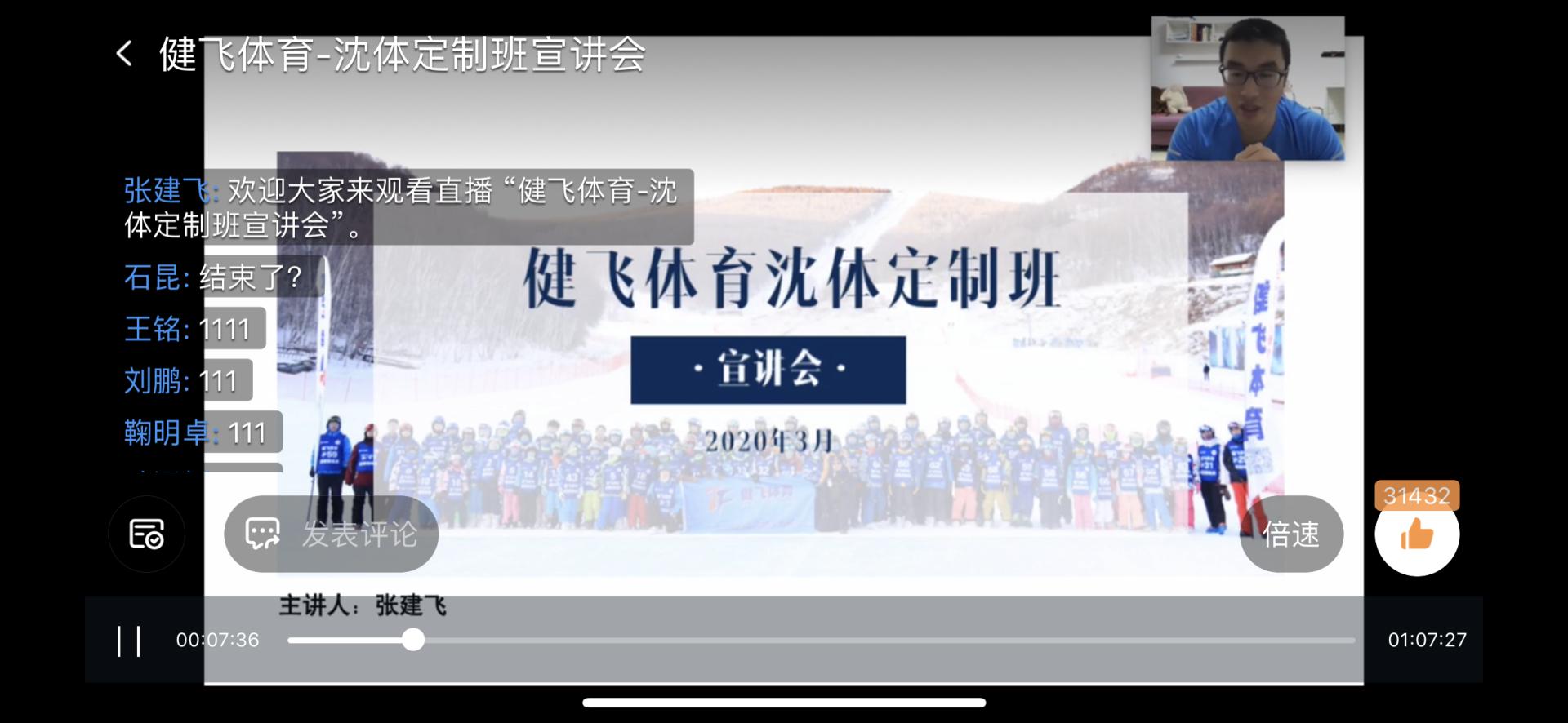 接着,张建飞老师从少儿体能与青少年户外现状、定制班内容的简介、人才培养计划以及WilliamHill官方网站毕业生在健飞体育的发展这四个方面进行了较为详细的讲解,让同学们了解到线上体能教学的发展前景极为广阔,同样少儿体能也有极大的市场,让同学们对订单班也有了进一步的了解。