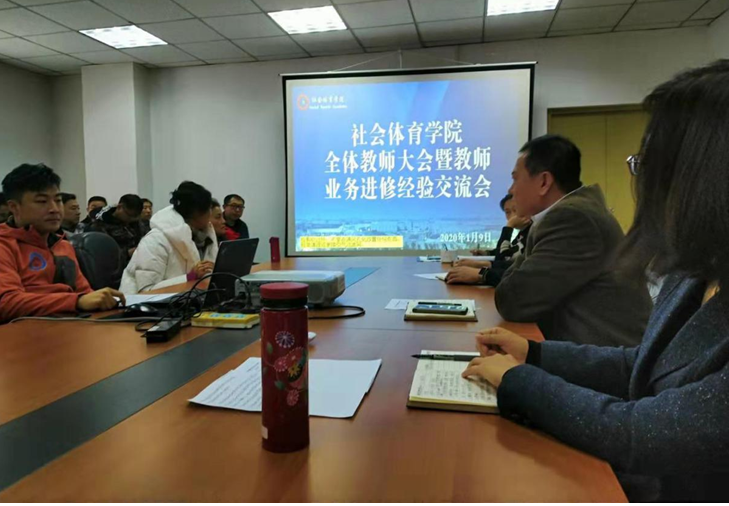 会议的第二项内容,由社会学教研室宋铁男、王桂红,休闲运动教研室王翔宇,健身运动教研室王兴等4名教师分别就赴美国访学、参加幼儿定向运动指导师培训、参加2019中国登山户外行业大会、参加3DMAPS动作分析与训练系统学习情况及收获与全体教师进行分享交流。
