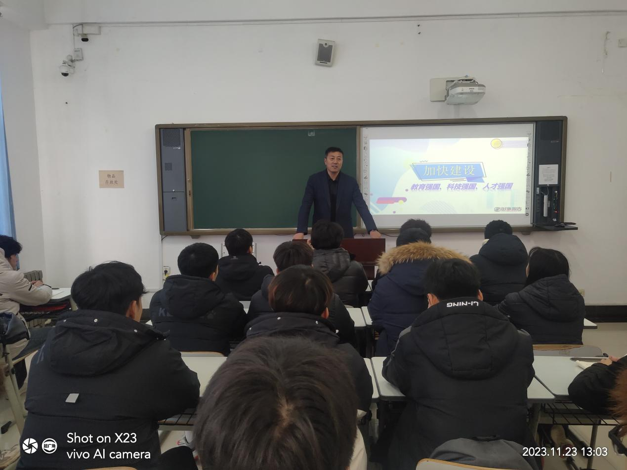 邹本旭以《教育强国、科技强国、人才强国》为题,紧密结合党的二十大精神,就党的二十大报告中关于教育的重要论述和决策部署进行了解读,通过真实案例让同学们深刻理解了强国之路中科技、人才、教育的重要地位和推动作用。他强调将课堂知识同职业规划、未来工作相结合,以理论指导实践,并对同学们的实践创新想法予以积极鼓励和大力支持。