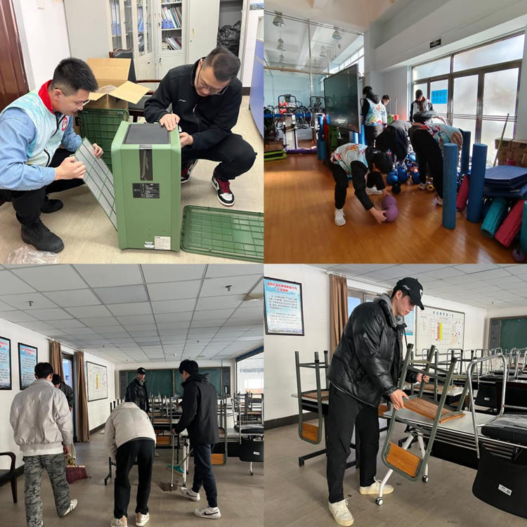 3月6日下午,公司组织50余名志愿者,积极对接休闲运动教研室、健身运动教研室以及游泳教研室,分别对办公区、器材库、健身场馆角落、器材、桌椅等进行清扫维护,整理入库,为新进器材粘贴标签等。志愿者们合理分工,配合默契,认真清洁垃圾和卫生死角,为教师和员工提供一个清洁、舒适的上课和锻炼环境。
