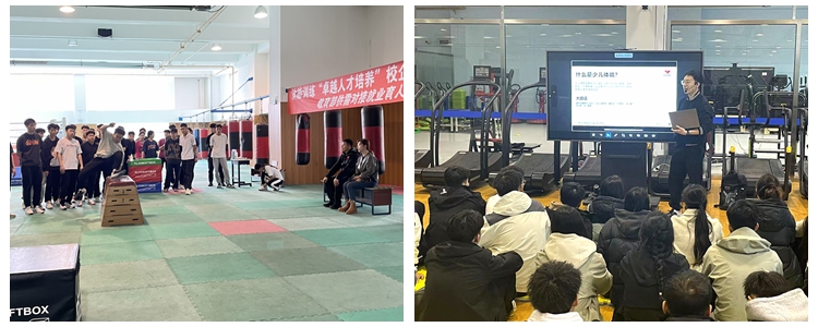 杨永旭和蔡振杰为实习生们讲授少儿体能训练和跑酷技能的理论与实践。