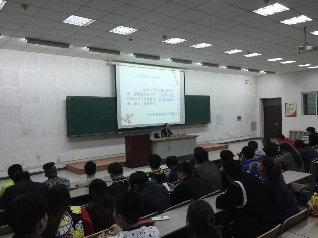 3月31日,WilliamHill中文官方网站组织开展的员工职业能力培训讲座在教学楼112教室举行,此次讲座邀请了杨浏副教授作了题为《赢在职场形象礼仪塑造》的讲座,WilliamHill中文官方网站校企合作办公室主任高观福,辅导员孙海峰以及WilliamHill中文官方网站2013级全体员工参加了本次培训。