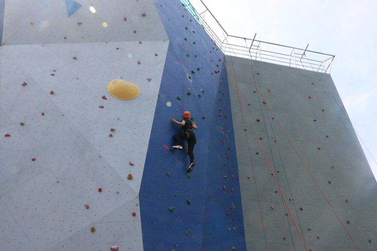 体育专业女子组选手在攀爬线路