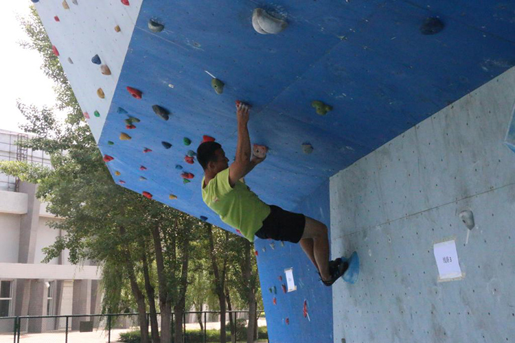 专修男子选手在挑战攀石线路