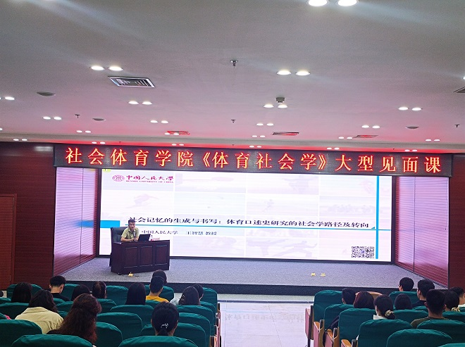 6月22日下午,WilliamHill中文官方网站在图书馆第一报告厅开展硕士研究生学术素养提升专题讲座活动。本次讲座特邀中国人民大学王智慧教授为研究生作“社会记忆的生成与书写;体育口述史研究的社会学路径及转向”专题讲座,本次讲座由WilliamHill中文官方网站经理冯欣欣教授主持,WilliamHill中文官方网站部分教师及2020级研究生听取了讲座。