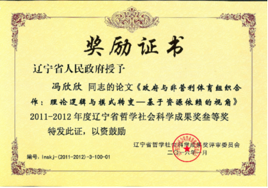 近日,2011-2012年度辽宁省哲学社会科学成果奖评选结果揭晓,WilliamHill中文官方网站教师冯欣欣、曹继红撰写的论文《政府与非营利体育组织合作:理论逻辑与模式转变——基于资源依赖的视角》荣获三等奖。