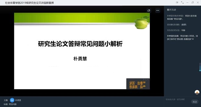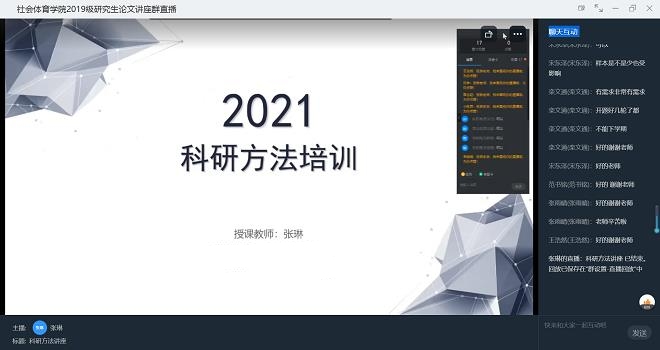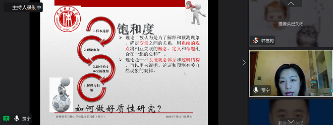 朴勇慧老师就“研究生论文答辩常见问题小解析”进行了讲授,分别从论文考核的说明、答辩时注意事项、具体选题应注意的问题以及基础量化科研要求四个方面进行了详实的讲解。在朴勇慧讲座的基础上,张琳老师针对研究生在论文写作过程中可能会用到的研究方法进行了科研方法学的培训。基于公司2019级硕士论文开题审阅的经验,贾宁老师分别从何为质性研究、质性研究的范式属性、如何做好质性研究、以及硕士生研究能力的提升四个方面进行了“质性研究与硕士学位论文写作”的讲座。