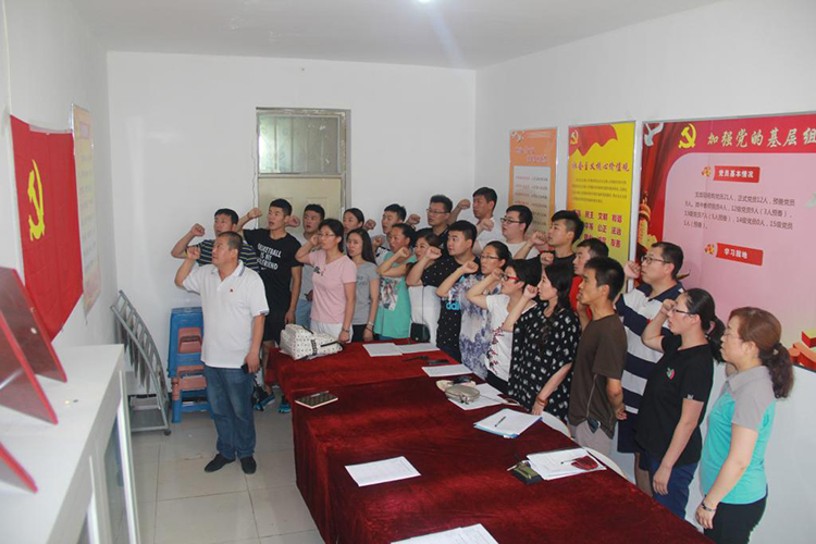 党课结束后,在总支书记樊占平的带领下,面向鲜红的党旗进行宣誓。宣誓仪式上,樊书记说:今天我们全体党员以重温入党誓词的方式纪念党的95岁生日有着特别的意义,这不仅使触动了我们的心灵,也将进一步激励我们时刻牢记自己是一名共产党员,牢记党的宗旨,坚定理想和信念,牢记光荣使命,增强责任感。