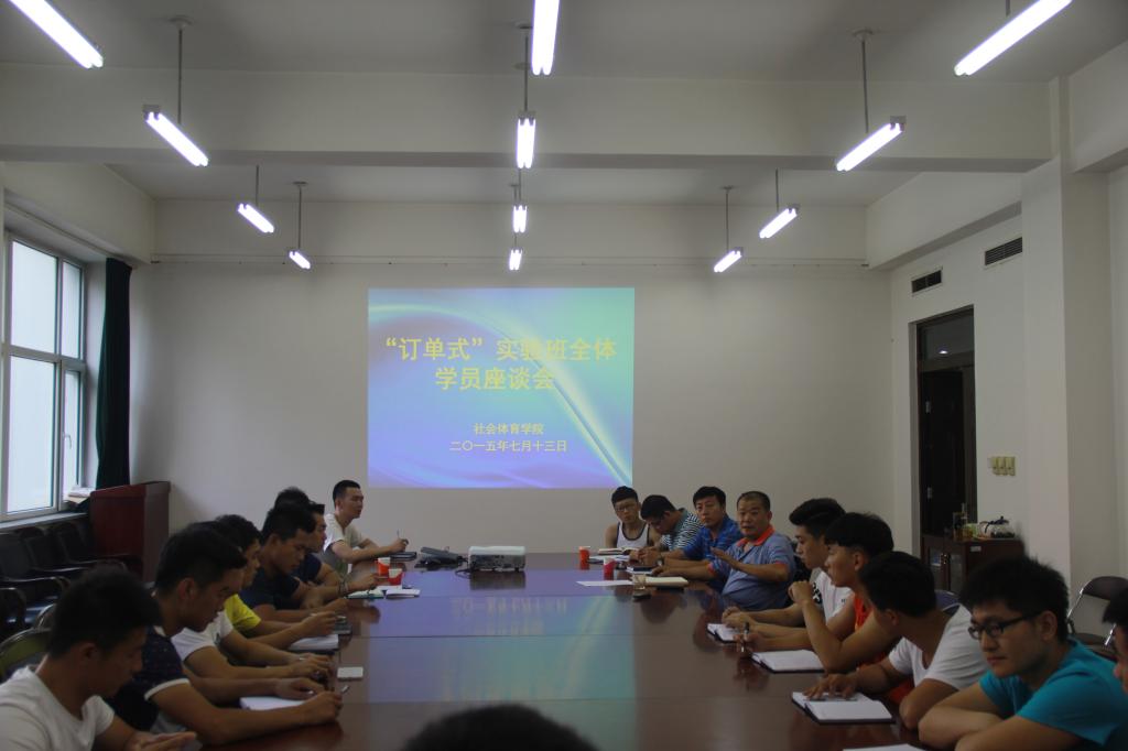 为了使“订单式”实验班全体学员在暑假期间进入企业的学习培训能够顺利进行,7月13日,WilliamHill中文官方网站在科技楼二楼会议室组织召开“订单式”实验班全体学员座谈会,意在梳理员工思路,解决员工疑惑。本次座谈会由实验班班主任高观福主持,韦德伍斯健身体育发展有限公司董事长助理Kevin、沈阳中街店店长孙鹏、WilliamHill中文官方网站党总支书记樊占平、副书记刘秀红、副经理邹本旭出席会议,“订单式”实验班全体学员参加会议。