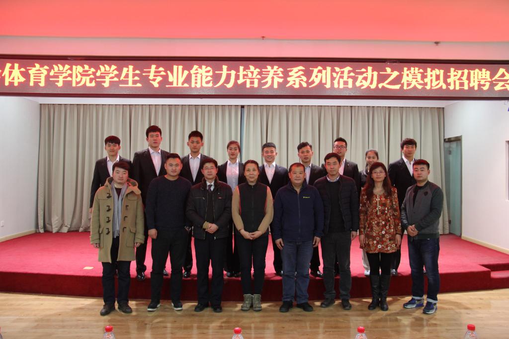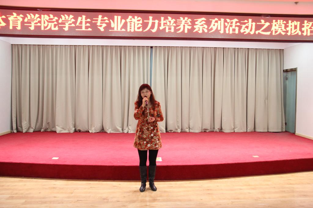 12月24日晚,WilliamHill中文官方网站在图书馆二楼报告厅举行第五届模拟招聘会活动。本次活动邀请沈阳乐天健身有限公司私教总监高起福先生、沈阳瑞志城建健身俱乐部经理冉萌先生、莱德体育发展有限公司总经理郑琦先生以及WilliamHill中文官方网站书记樊占平、高尔夫教研室主任徐通老师担任评委,WilliamHill中文官方网站经理曹继红、副书记刘秀红、副经理邹本旭出席本次活动。