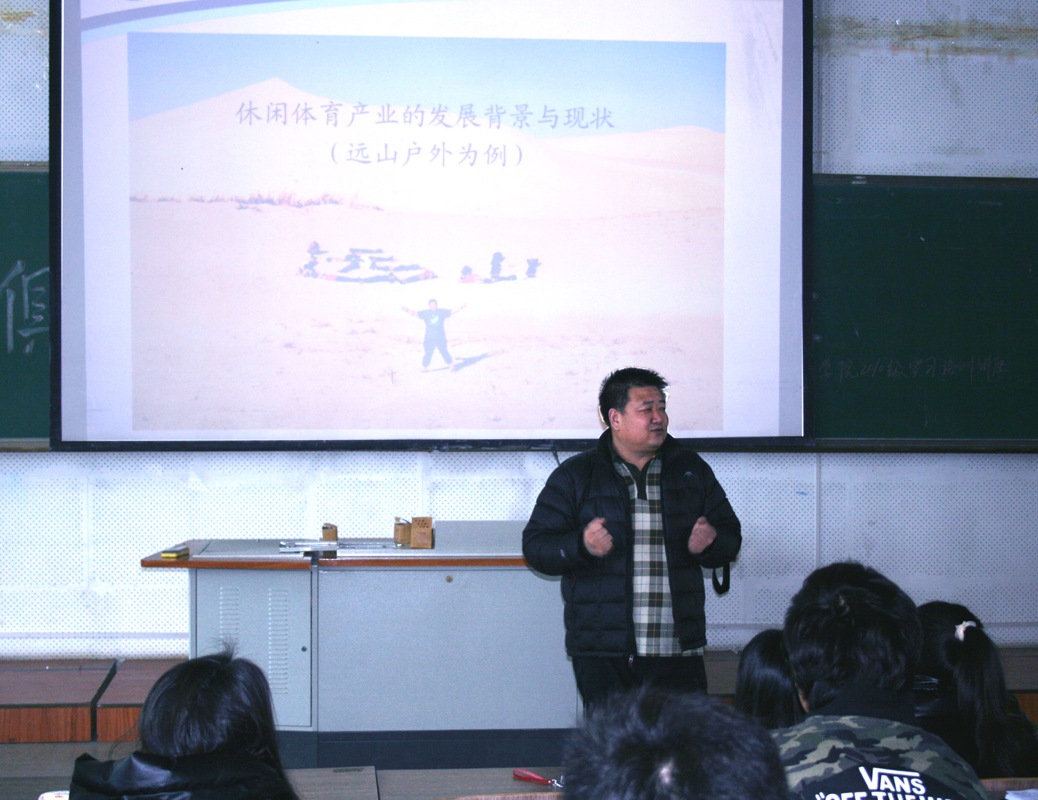 他向同学们讲解了现阶段休闲体育产业的市场现况,他认为目前休闲产业具有极大的市场潜力,以及国家近年来对于体育行业严格监管的政策,要求同学们要根据自己的专业,去考取相关的资格证书,做到持证上岗。他以自己多年的经验分析了休闲市场需要怎样的人才,希望同学们做复合型人才,不仅仅要学习好本专业的知识,更要博学多才。只有多种的技艺才可能在未来的工作中赢得更多的机会。