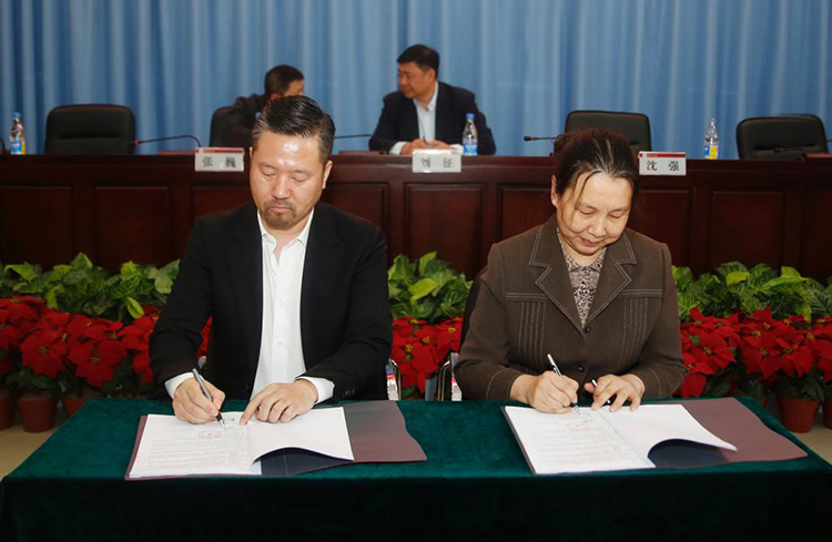 公司经理曹继红与韦德伍斯集团董事长沈强签署协议书。