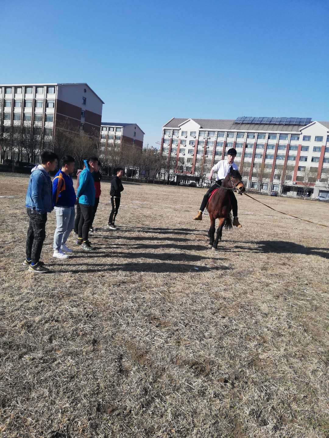 两天教学均是从理论学习到实际操练再提升总结的步骤有序进行。理论教学中,宋阳经理分别向同学们介绍了马的文化,马术的历史,西部马术与英式马术的区别,马匹的管理,马术产业的发展及就业前景等,让同学们开拓了专业视野。结合理论教学,同学们在室外网球场体验了梳毛、喂食,在投掷场体验了牵马、骑马,激发了同学们高昂的学习兴趣,以及对体育旅游产业发展的极大信心。