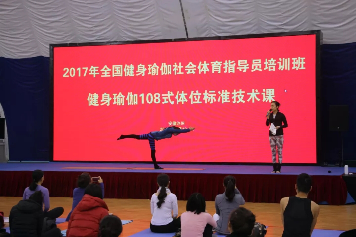 12月12日-17日,由国家体育总局社会体育指导中心和中国社会体育指导员协会主办的首期全国健身瑜伽社会体育指导员培训班在安徽池州开班。来自全国31个省、自治区、直辖市的体育部门瑜伽项目管理干部、健身瑜伽教练员、裁判员共188名学员参加培训。