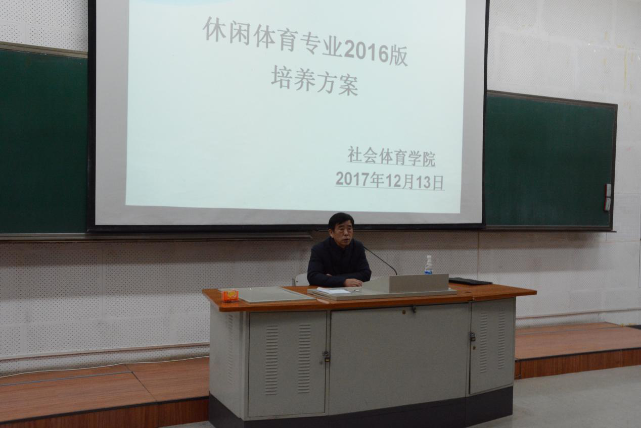 图为曹继红教授讲解社会体育指导与管理专业培养方案。