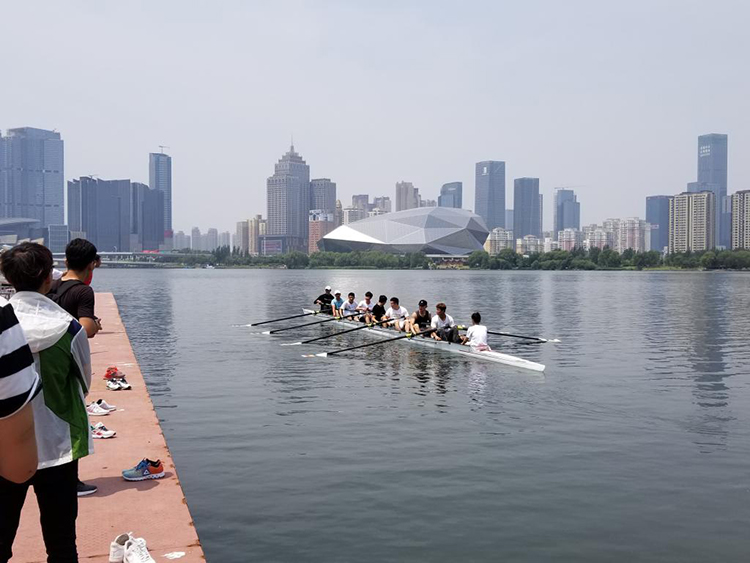 本次活动得到了沈阳浑河航运集团的大力支持,副总经理赵中夏亲自带队并授课,赛艇世界杯冠军周闯教练组织赛事专项体验、实训工作。本次赛艇实训体验活动包括赛艇的器材介绍及文化讲解、测功仪教学、赛艇安全教学、八人赛艇水上体验等环节。