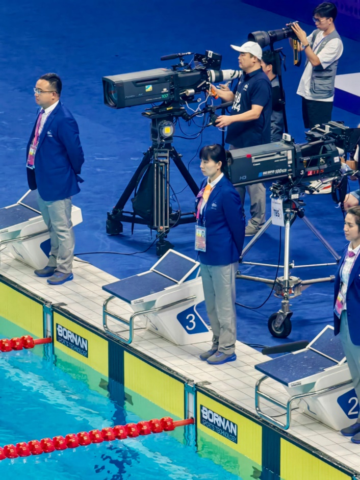 魏梅副教授具有丰富的游泳比赛执裁经验,多次代表我国参加世界级游泳项目赛事的裁判工作。在赛场上,她时刻保持高尚的职业道德精神,运用丰富的专业知识,以严谨的工作态度坚守在亚运赛场,确保每一场比赛公平公正,助力杭州亚运会游泳比赛顺利进行。